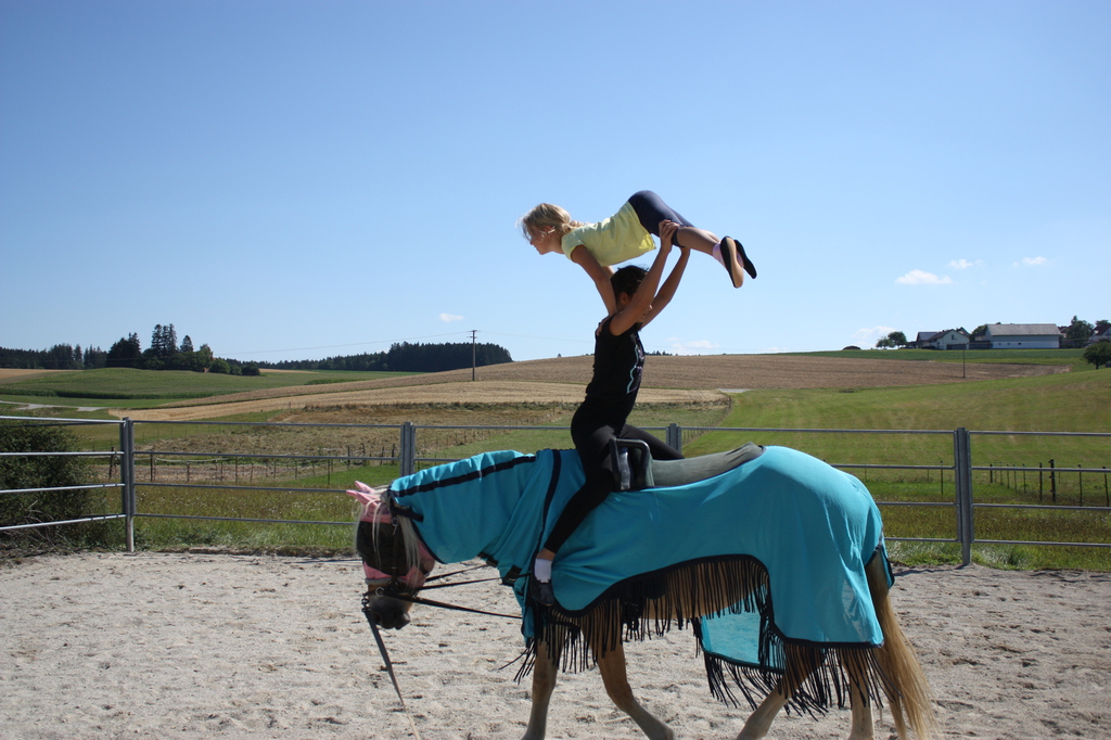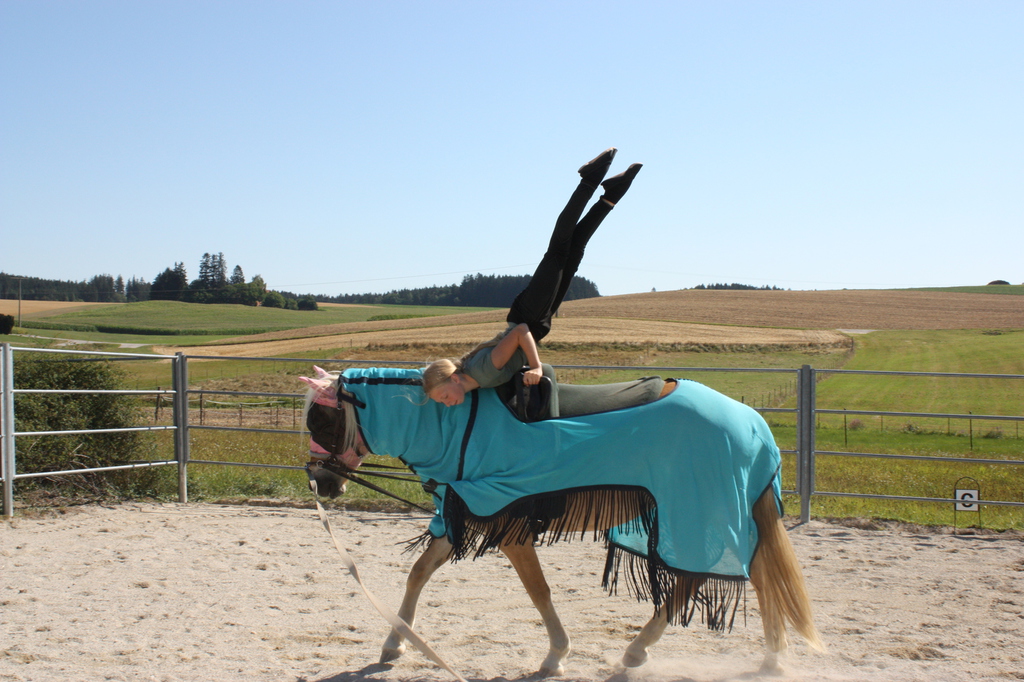 Bärbel hat regelmäßig Voltigier- und Reitstunden. Allerdings sind die Plätze derzeit fast voll belegt!